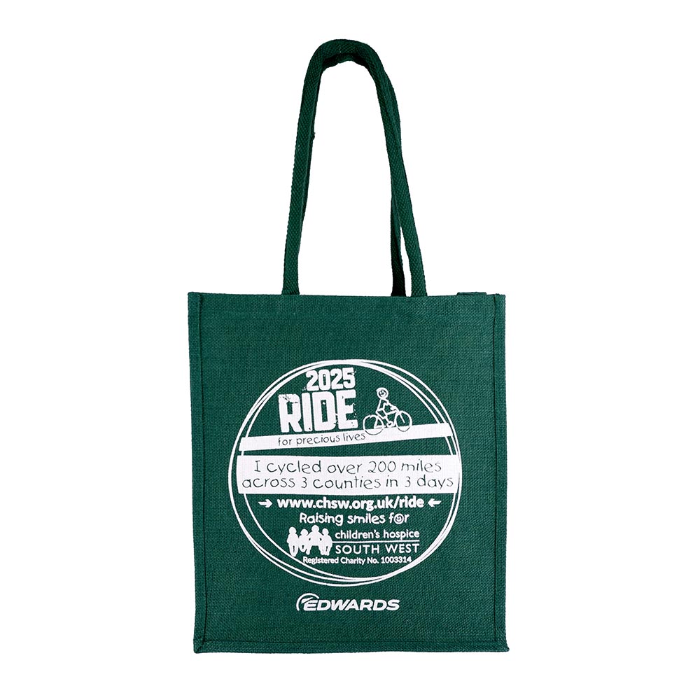 Over the years, we have produced a range of bags for their incredible events. For the Moonlight Memory Walk, a poignant event that brings communities together to remember and celebrate the lives of children, we have supplied our GJ030 Standard Portrait Jute Bag in Natural and Purple colorways, as well as a Purple-only option. This bag features quality lined jute fabric with a fine 14/15 weave and luxury padded handles made from soft cotton, with dimensions of 35cm (w) x 40cm (h) x 15cm (d). We have also provided our GJ040 Medium Jute Bag in White/Purple, which features quality lined jute fabric with a fine 14/15 weave and flat webbed handles made from soft cotton, measuring 39cm (w) x 36cm (h) x 15cm (d). Most recently, for Ride for Precious Lives, an inspiring cycling challenge that raises vital funds while bringing the community together, we have provided our GJ030 Standard Portrait Jute Bag in Forest Green, featuring quality lined jute fabric with a fine 14/15 weave and luxury padded handles made from soft cotton, with dimensions of 35cm (w) x 40cm (h) x 15cm (d), along with our GJ040 Medium Jute Bag in White/Green, which features quality lined jute fabric with a fine 14/15 weave and flat webbed handles made from soft cotton, measuring 39cm (w) x 36cm (h) x 15cm (d).