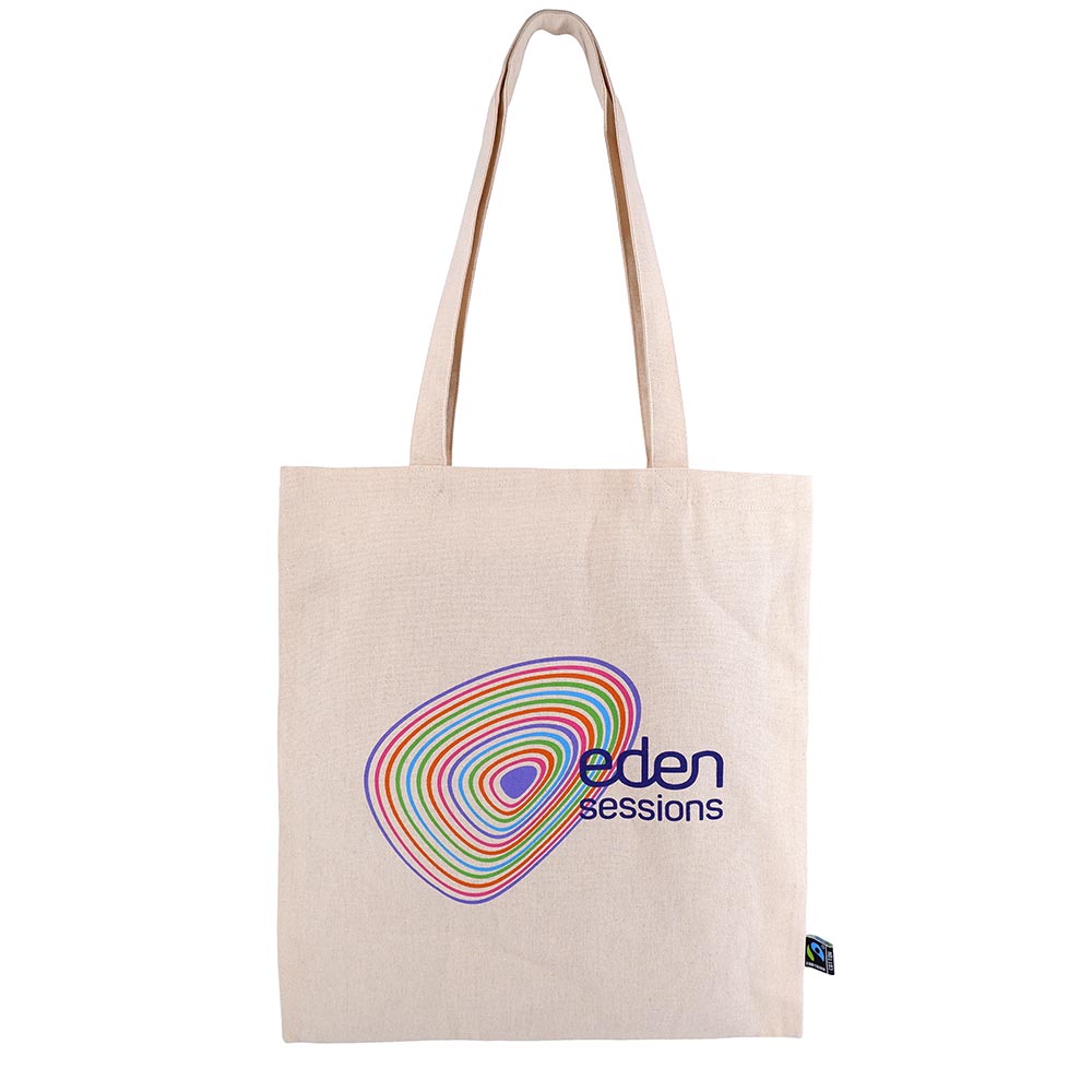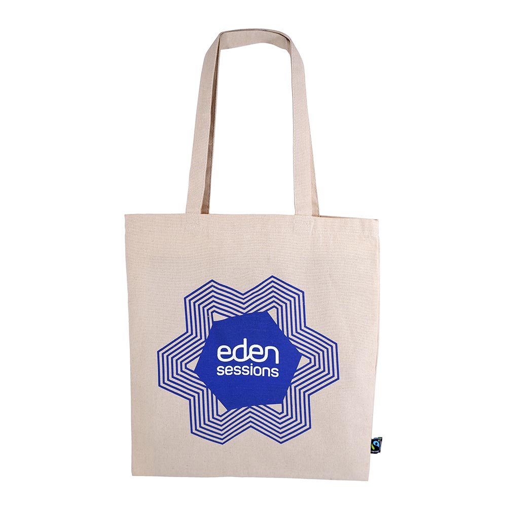 A bespoke 8oz Organic Fairtrade Cotton Canvas Bag was developed and printed to Eden’s desired design, and has had many different prints over the years, aligning with different events. Measuring 38cm by 42cm, the bag features double-thickness 8oz cotton handles for comfort and strength. Every detail, from handle length to print placement, was carefully considered to ensure quality, longevity, and usability.